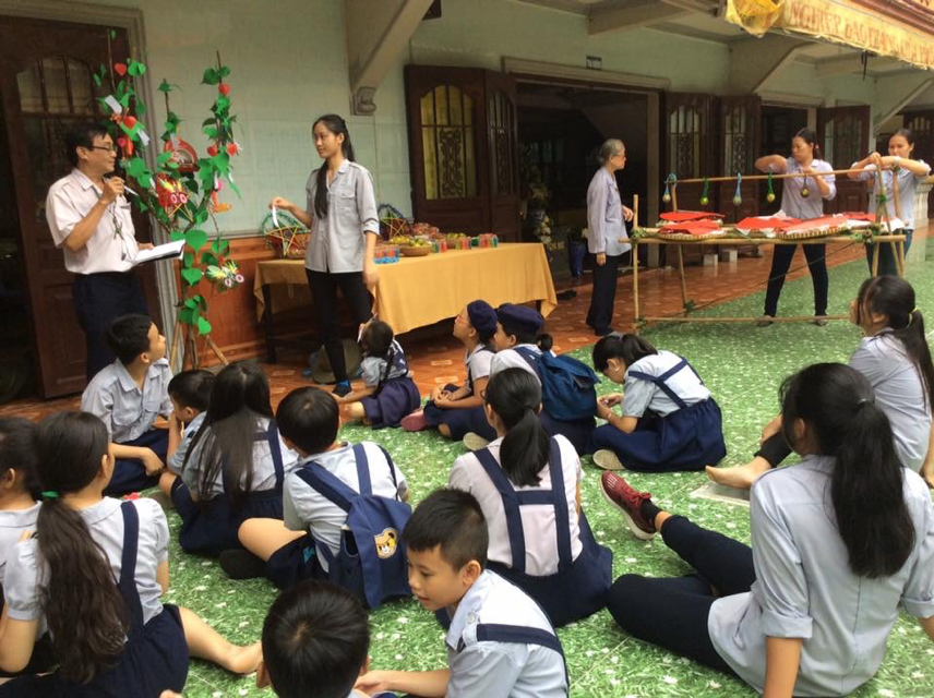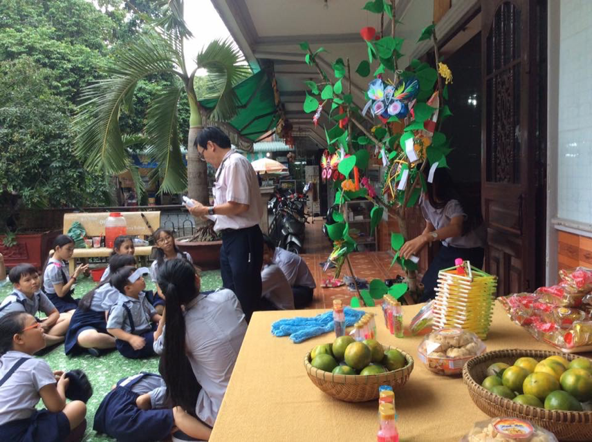 Lúc hai giờ, mọi người đã có mặt tại chùa. Các anh chị huynh trưởng đã bày dọn xong tất cả, mọi thứ nơi đây được trang trí trông rất đẹp. Đầu tiên, mọi người cùng chơi hỏi đáp, mà các huynh trưởng gọi là “hái hoa dân chủ”. Có những câu hỏi nói về Trung Thu rất hay.